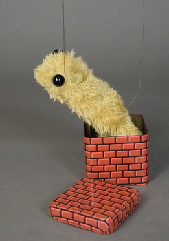 byヒダオサム(HidaOsamu)マリオネット / フェイクファー・ボア・ボタン・鉛など全長 18~20cm 缶or丸箱付き・箱入り¥8,000 |