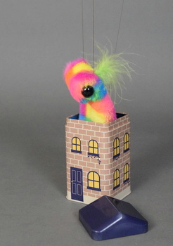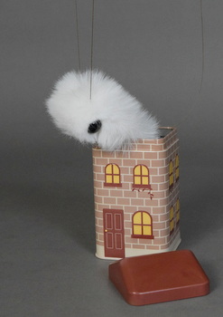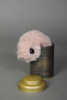 byヒダオサム(HidaOsamu)マリオネット / フェイクファー・ボア・ボタン・鉛など全長 17~18cm 缶付き・箱入り¥8,000 |