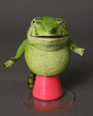 | パペットハウス恒例の指人形展でもお馴染みの動物オブジェ作家、朝隈俊男氏の 小玉シリーズ第二弾が、ついに登場です。 今回は、「爬虫類・両生類小玉」。 ご自身、大の爬虫類好き。愛情の深さが、造形のすみずみまでにじみ出ている 傑作ぞろいです。 すべて、一点物の作品です。 |