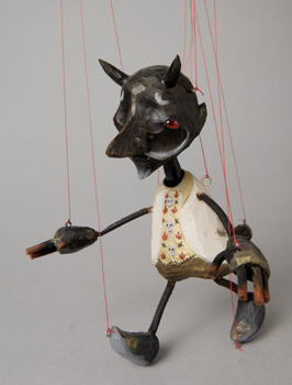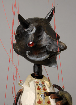 マリオネット/ 木彫り・彩色・ガーネット 15cm